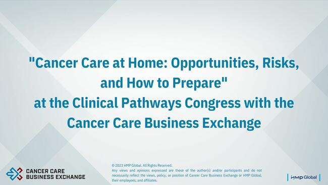 John Hennessy, MBA: Hi, my name is John Hennessy. I’m a principal and strategist at Valuate Health Consultancy, and at the Cancer Care Business Exchange, I'll be leading a discussion on cancer care at home. You know, sort of the opportunities that exist there, the challenges that exist there, and how we make sure we're delivering care to patients in a way that makes sense for patients, that we're really being patient centric. Not just saying, “I've got a nice facility to you for you to come to,” but how can I take the care that you need to a place that makes sense for you as a patient, as part of our community.