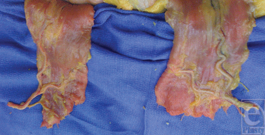 | Figure 2. A dissection of the posterior aspect of the rectus muscle and the DIEA and its branching pattern. |