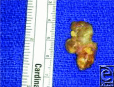 A 32-year-old right hand dominant female presented with a 2-year history of a slowly growing firm, nodular, and nontender right thumb mass. Sensation and strength in the involved digit were intact. Range of motion was mildly restricted. Surgical dissection of the lesion is shown in Figures.