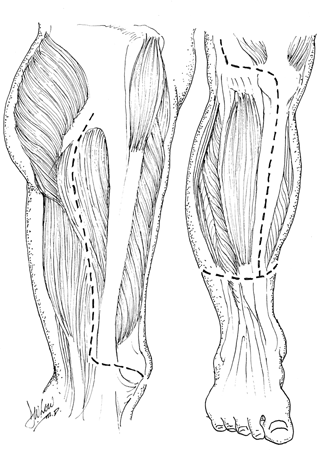 | Figure 1. Illustration of incisions for pedicled fillet of leg flap. |