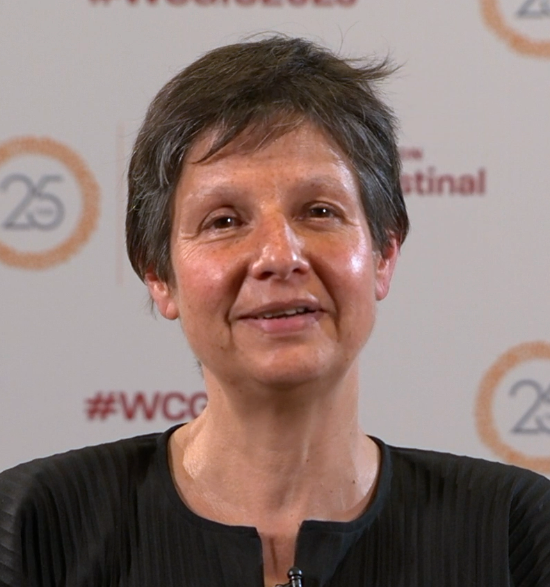 Hi, everybody. My name is Sabine Tejpar. I'm a GI oncologist from Leuven in Belgium. I'm here at the 2023 World Congress on GI Cancers in Barcelona. And I just gave a talk on a rather complex issue, single cell analysis in colorectal cancer. But to phrase why we do this, it's basically trying to peel away the layers of a disease, which is considered just a nomer, it's colorectal cancer. But it has all kinds of features and facets and cell types that are there. And we strongly believe that knowing each of the states of these cells will lead us to better therapies and to better prognostication.